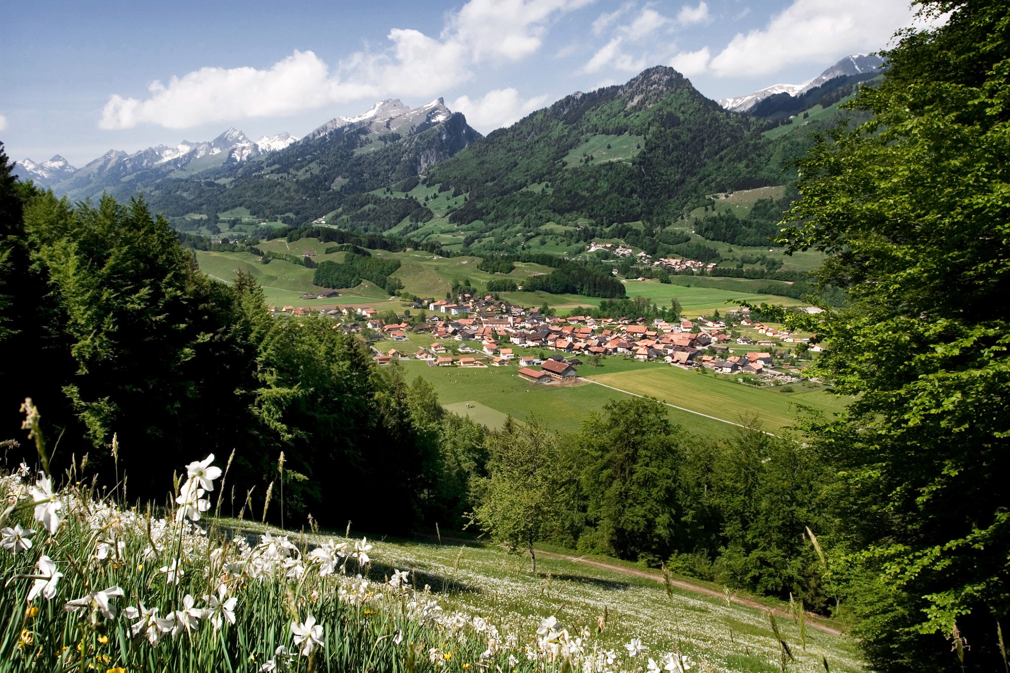 Grandvillard is a typical Gruyère village situated close by the Château de Gruyères, in the middle of a very beautiful valley. Grandvillard is said to date back to the Roman period and the name is derived from "Vilar" (1228). The present name is a combination of the Latin "villare" and the French "grand" (big), to indicate how the village had developed. The area was mainly agricultural until the second half of the twentieth century. Today Grandvillard is a very attractive and picturesque village of 700 inhabitants who find it a most enjoyable place to live in.